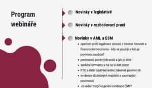 Aktuální webinář: 13. 1. 2026 (10:00 – 10:30 hod.) – ZMĚNY V OBLASTI EVIDENCE SKUTEČNÝCH MAJITELŮ A POVINNOSTECH PODNIKATELŮ V OBLASTI AML (OPATŘENÍ PROTI PRANÍ ŠPINAVÝCH PENĚZ)